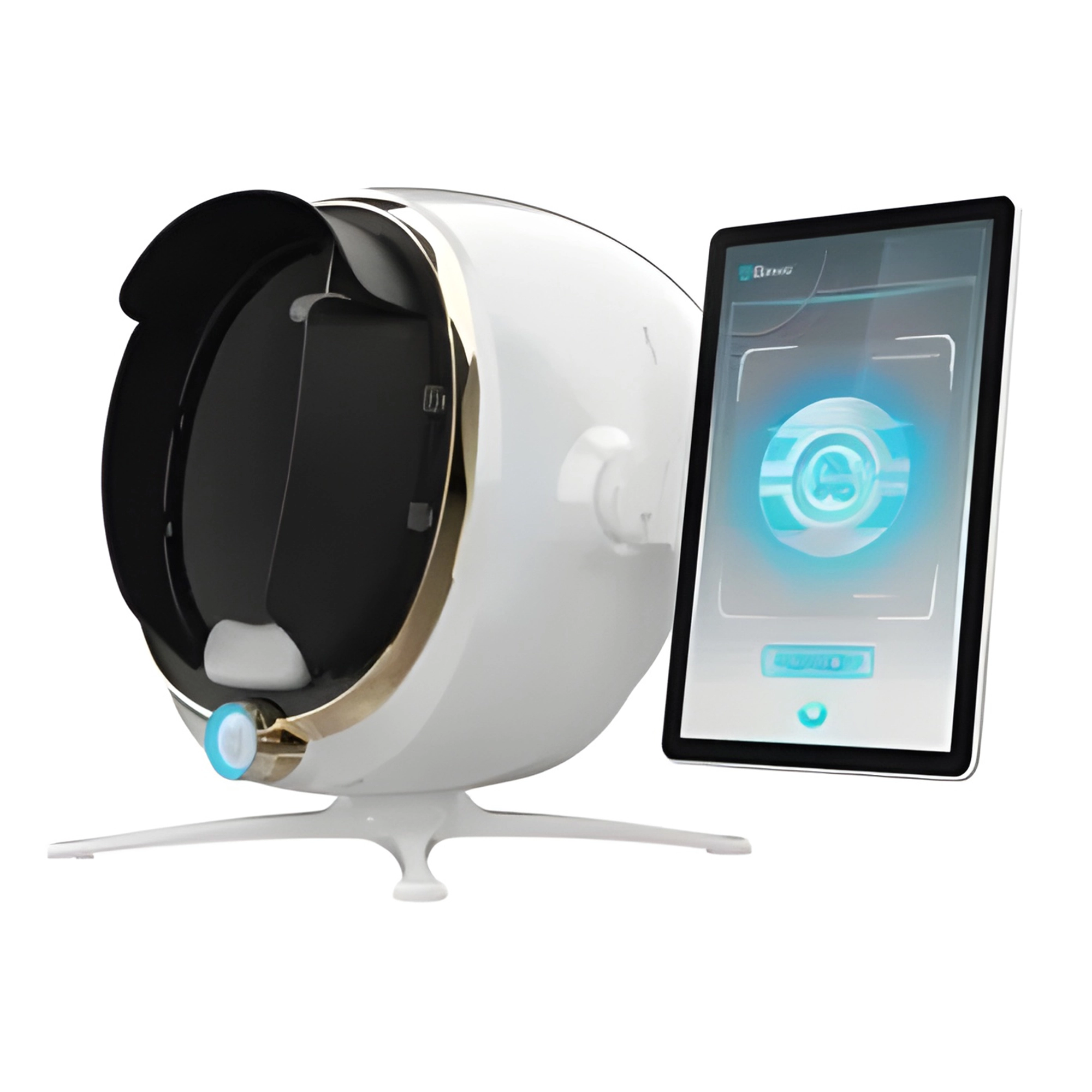 The AI Face Analyser is an intelligent diagnostic system designed to assess skin condition with high accuracy using advanced AI and deep learning algorithms. This device provides a comprehensive analysis of key facial metrics, including hydration, pores, wrinkles, pigmentation, acne, and skin texture.