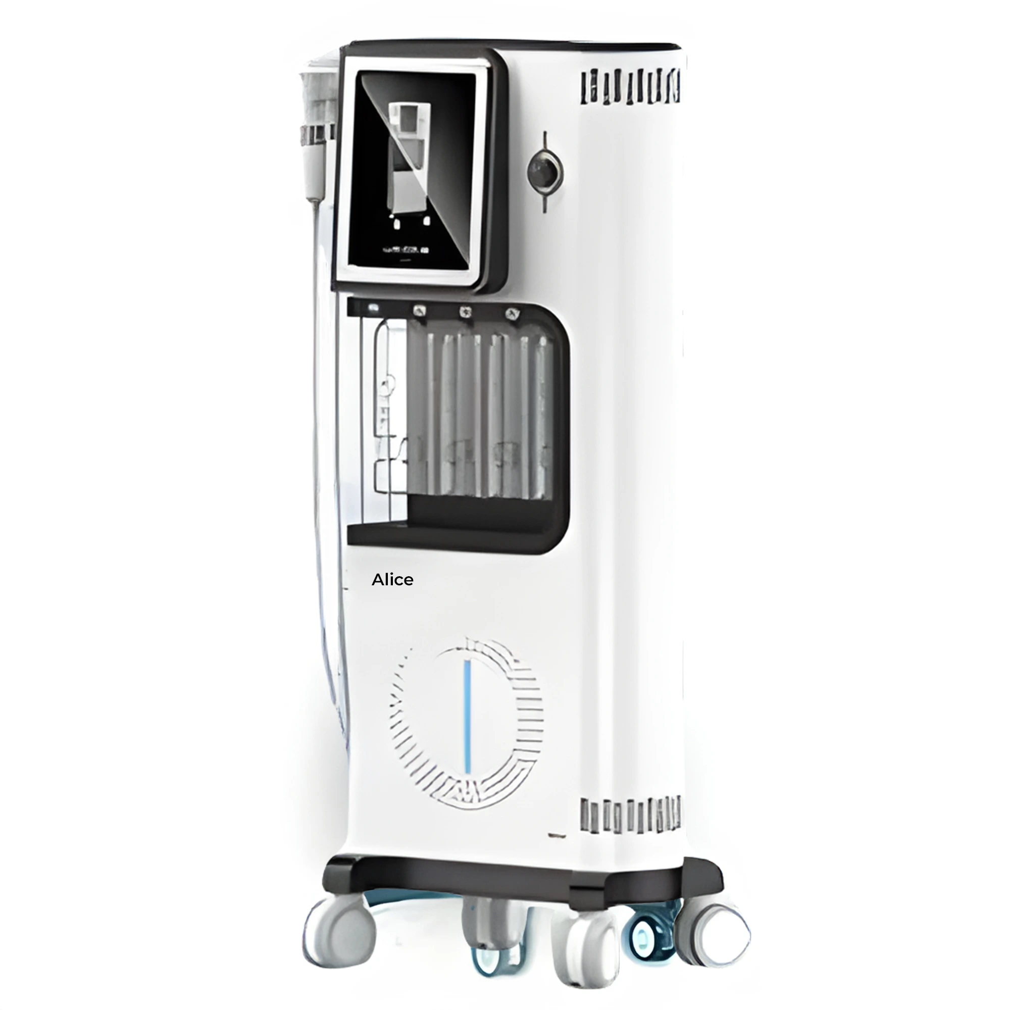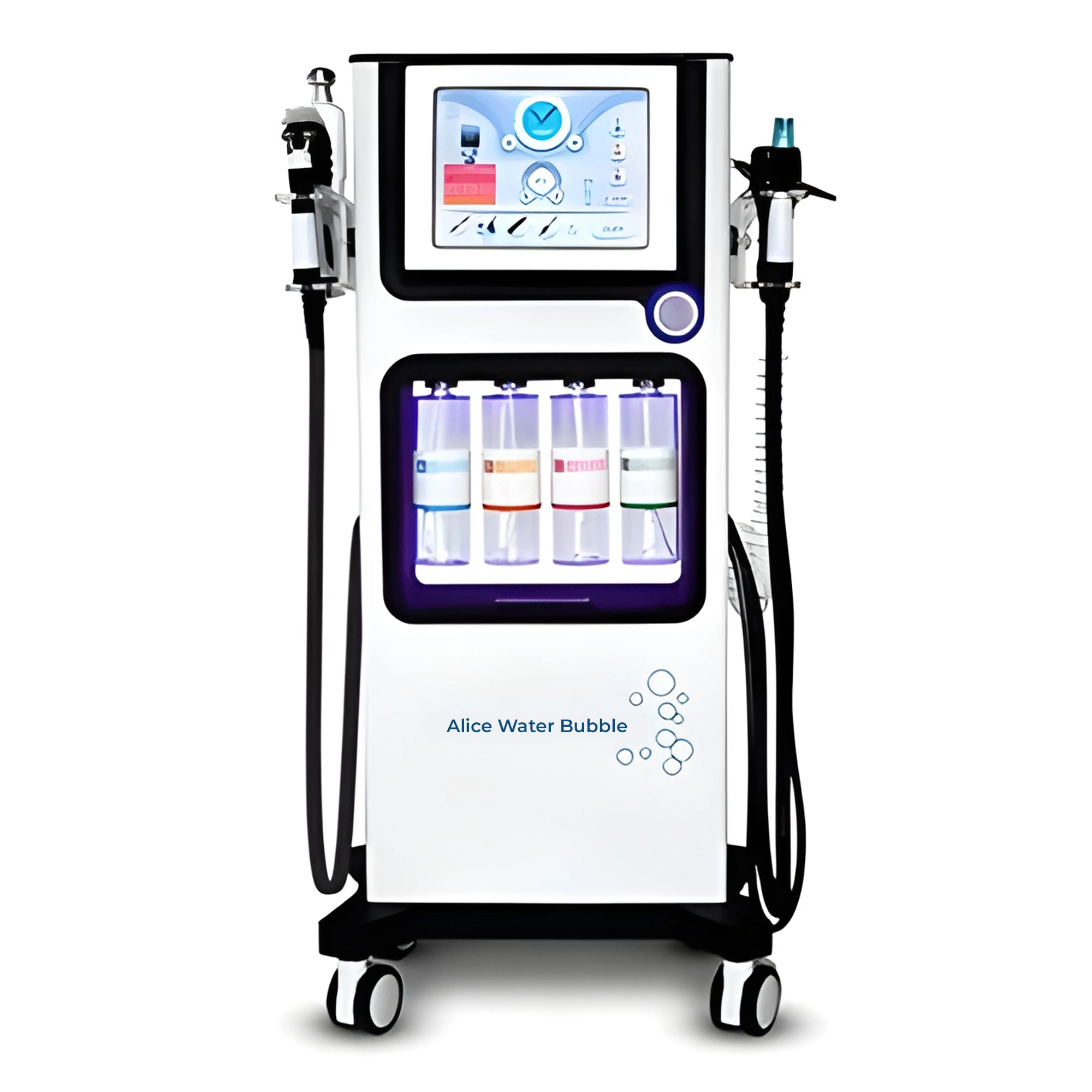 The Alice Super Bubble Hydra Machine Max is an advanced skincare device designed for deep facial cleansing and rejuvenation. It uses hydra dermabrasion technology to exfoliate, extract impurities, and hydrate the skin simultaneously. With multiple treatment heads, it targets a variety of skin concerns like acne, dryness, and dullness. The machine combines vacuum suction, serums, and LED therapy for enhanced results. Ideal for professional salons, it offers a non-invasive, comfortable skincare experience.
